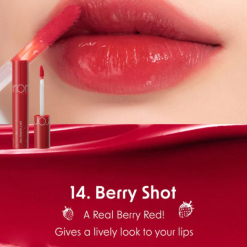 Màu son Romand Juicy Lasting Tint 14 Berry Shot ngay khi ra mắt đã trở thành tâm điểm của sự chú ý với các tín đồ làm đẹp. Đây là một màu son vô cùng nổi bật và cuốn hút, mang tông màu berry đỏ ngọt ngào, vừa đủ trầm để tạo nên sự sang trọng, vừa đủ rực rỡ để tôn lên vẻ quyến rũ của đôi môi.