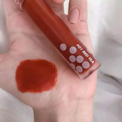 Son Romand Milk Tea Velvet Tint 01 Red Tea là màu đỏ gạch pha chút nâu, mang đến vẻ đẹp quyến rũ, sang trọng và đầy quyền lực. Đây là màu son hot trend trong thời gian gần đây và được nhiều tín đồ làm đẹp yêu thích.