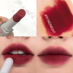 Son Romand New Zero Matte Lipstick 15 Midnight mang sắc đỏ mận pha chút nâu trầm ẩn chứa sức hút mãnh liệt, đầy bí ẩn. Màu son này sẽ là điểm nhấn hoàn hảo cho những cô nàng yêu thích phong cách quyến rũ, trưởng thành.