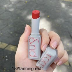 Trong đó, màu Son Romand New Zero Matte Lipstick 18 Tanning Red được đánh giá cao hơn cả nhờ sự kết hợp hoàn hảo giữa sắc đỏ và cam tươi tắn. Đặc biệt, son có thành phần dưỡng ẩm, chất son lì nên luôn mang đến cảm giác dịu nhẹ, mềm mịn suốt ngày dài.